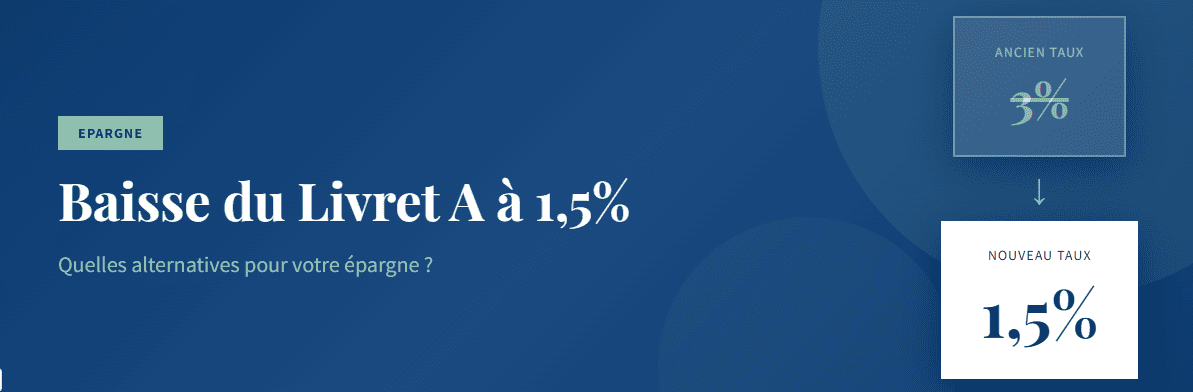 Baisse du Livret A à 1,5% : quelles alternatives ? Epargne Baisse du Livret A à 1,5% : quelles alternatives ? Mis à jour le 15 janvier 2026 C’est désormais officiel. Bercy a confirmé ce 15 janvier la baisse du taux du Livret A à 1,5% au 1er février, suivant la recommandation de la Banque … Lire la suite