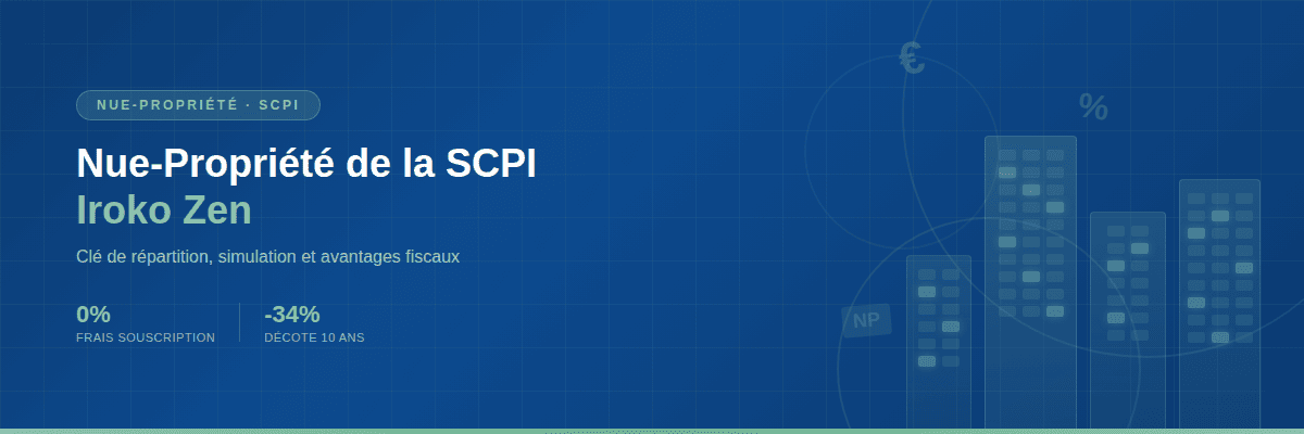 La nue-propriete d'Iroko Zen consiste a acquerir des parts a prix decote (selon la cle de repartition) sans percevoir de revenus pendant la duree du demembrement (3 a 20 ans). A la fin, vous recuperez automatiquement la pleine propriete avec une plus-value non fiscalisee.